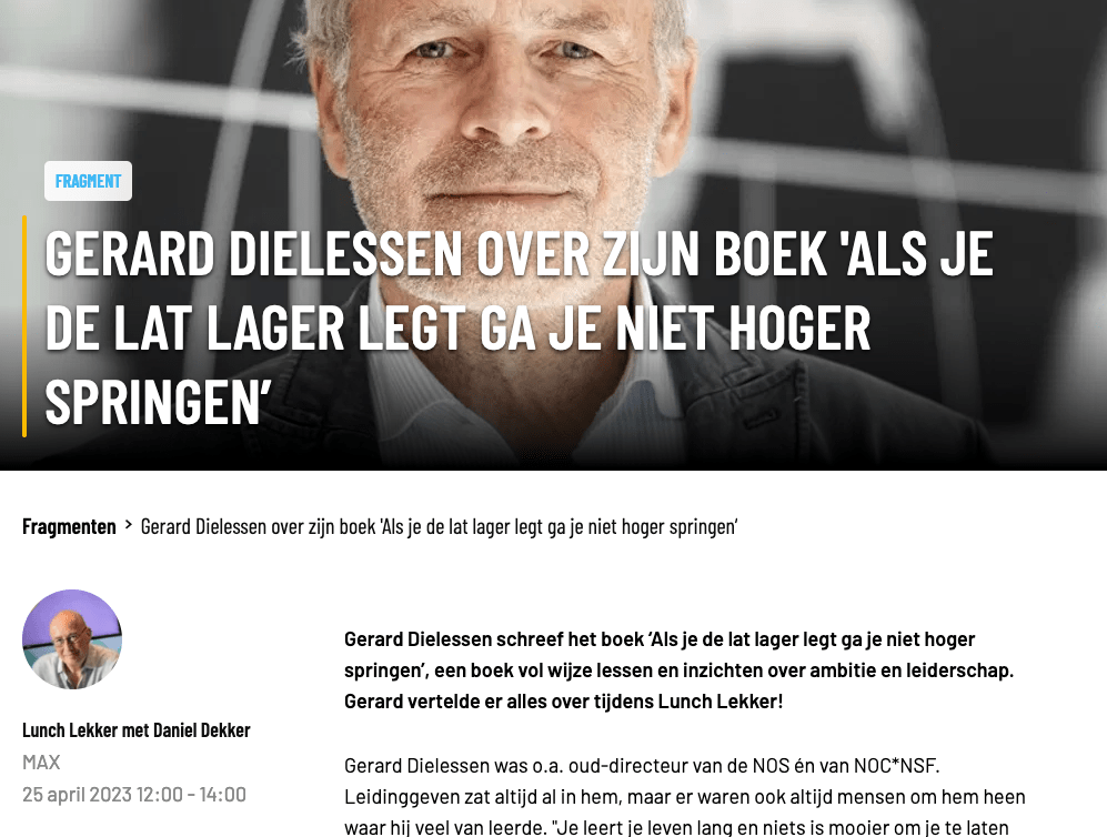 Ook had ik vorige week een leuk en onderhoudend gesprek met presentator Daniel Dekker in het Omroep MAX programma Lunch Lekker met Daniel Dekker op NPO Radio 5. Het interviewfragment is hier te beluisteren.